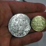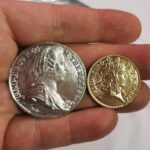 Máme nějaké dvě pěkné nové mince. Ta třetí je napoleonský dvacetifrank, ten už máme od vánoc, ale co jsou tyhle dvě, co mám v ruce? CO může být zač ta čtvrtá se ani neptám…